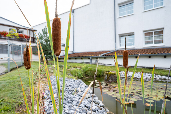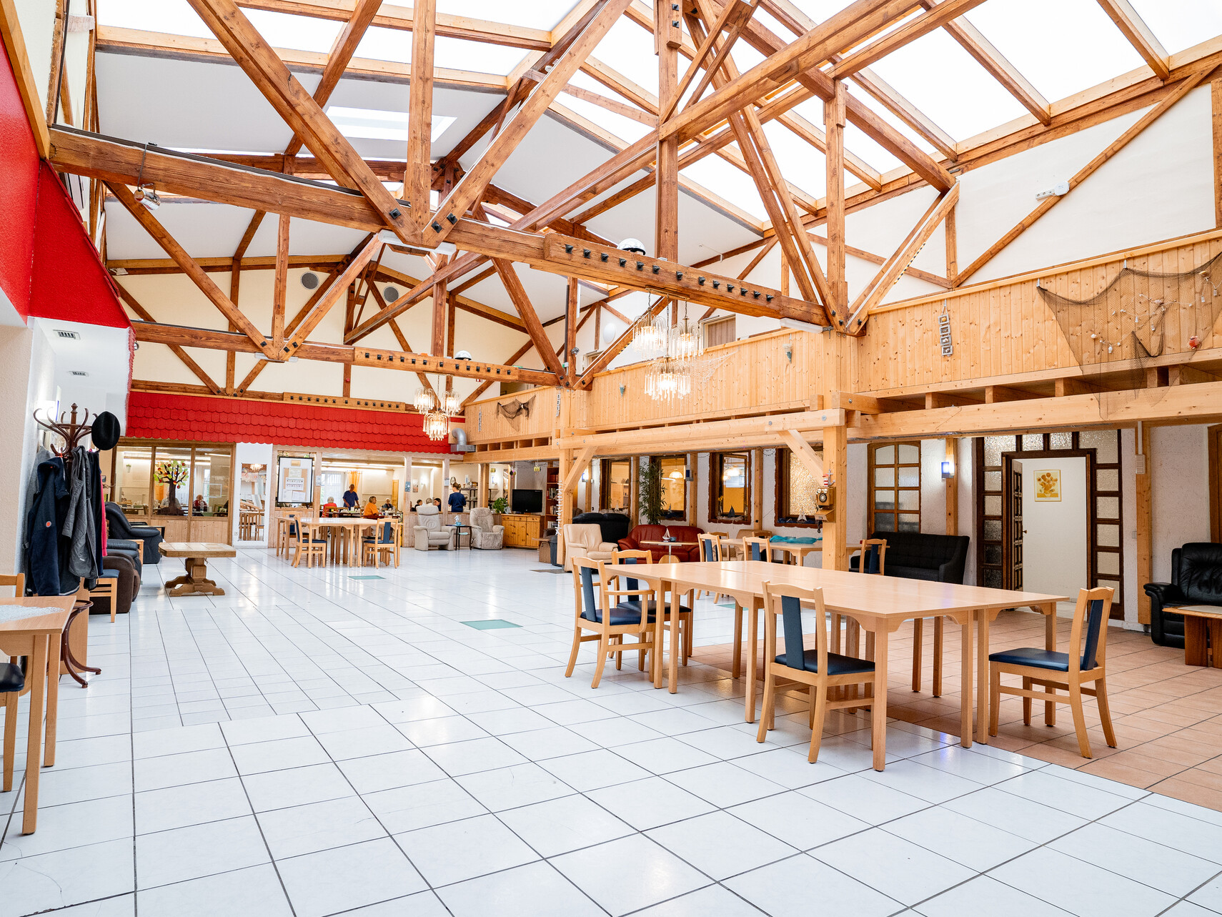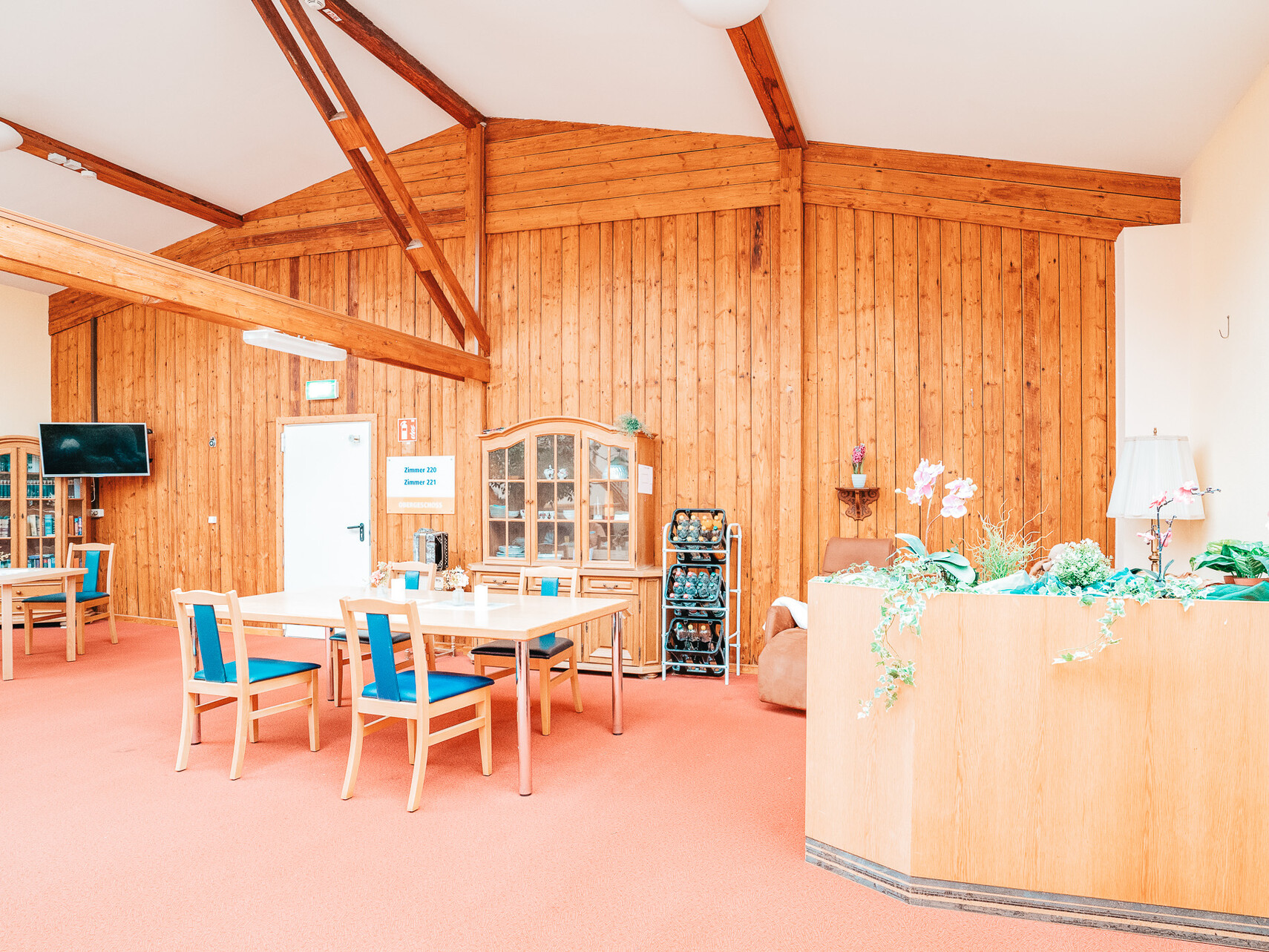 Unser gemütlicher „Dorfplatz“ sowie die großzügigen Außenanlagen laden zum geselligen Beisammensein, sowie zur Teilhabe an unseren vielfältigen Betreuungsangeboten ein. Die Gemeinschaftsräume sind jahreszeitlich und liebevoll dekoriert. Das Haus war im Gründerzustand ein Sägewerk, später diente es als Stall/Scheune - und hat dadurch einen ganz besonderen Charme, den alle Bewohner:innen sehr schätzen.