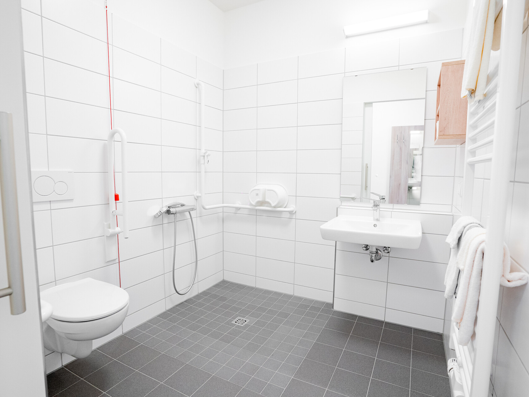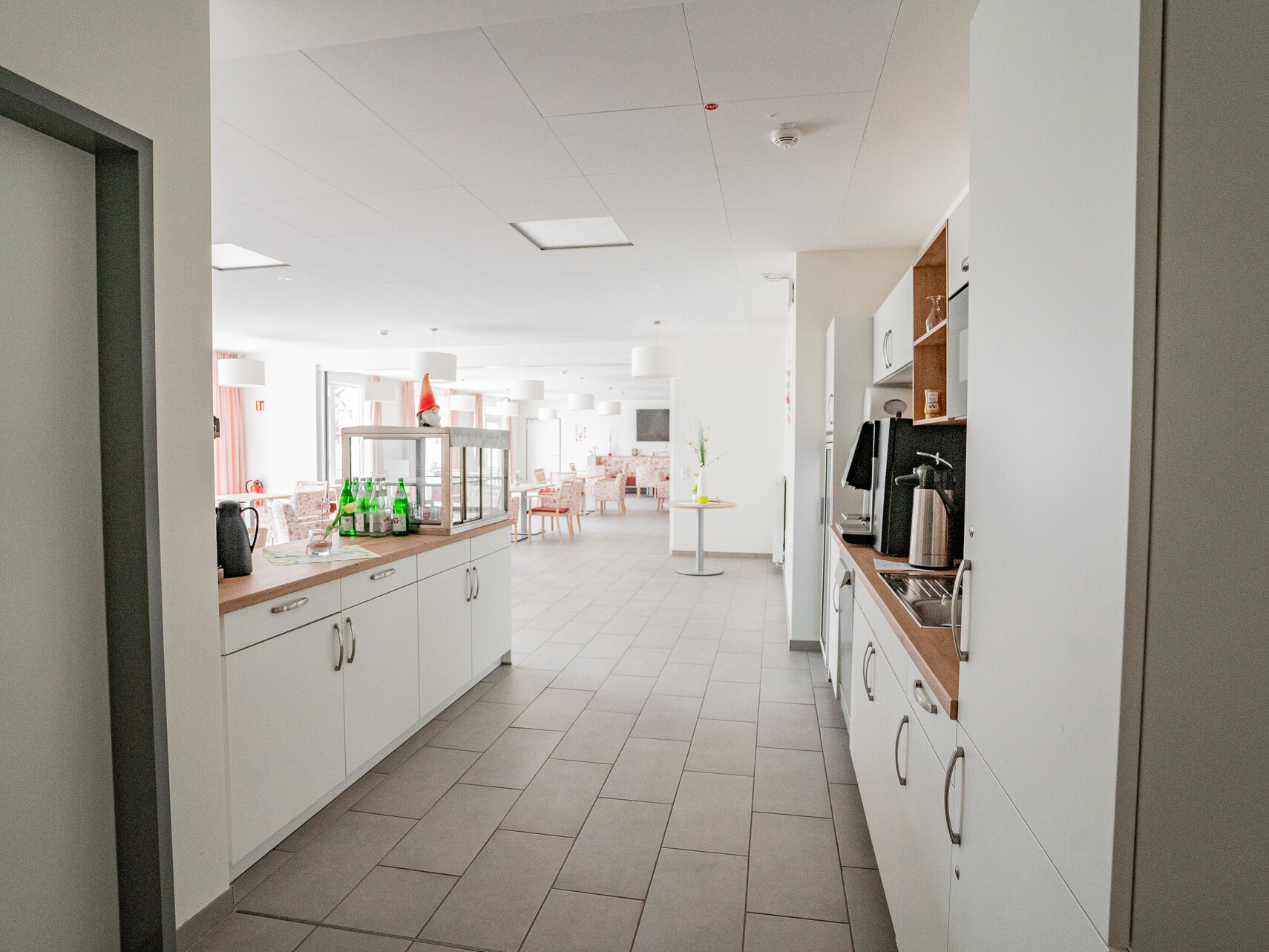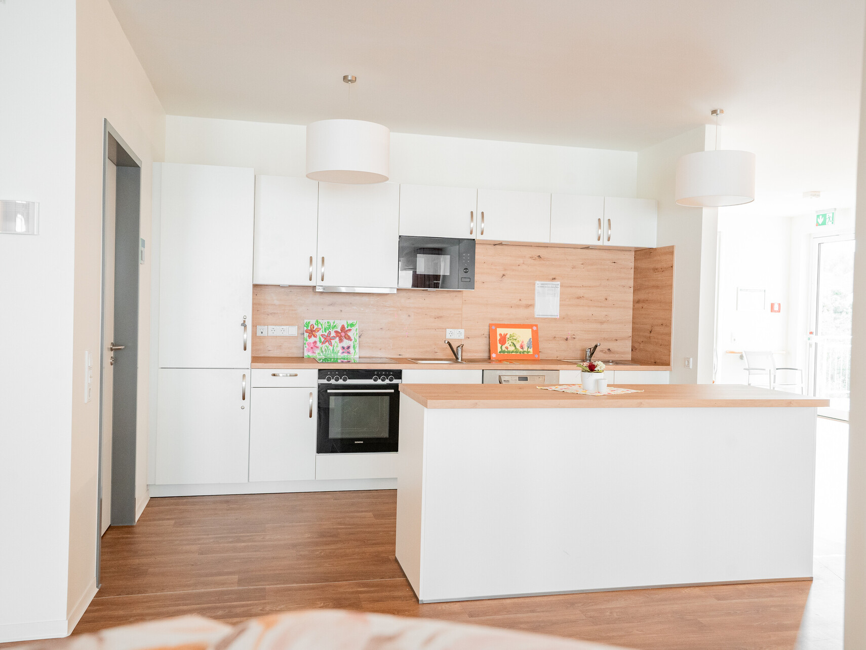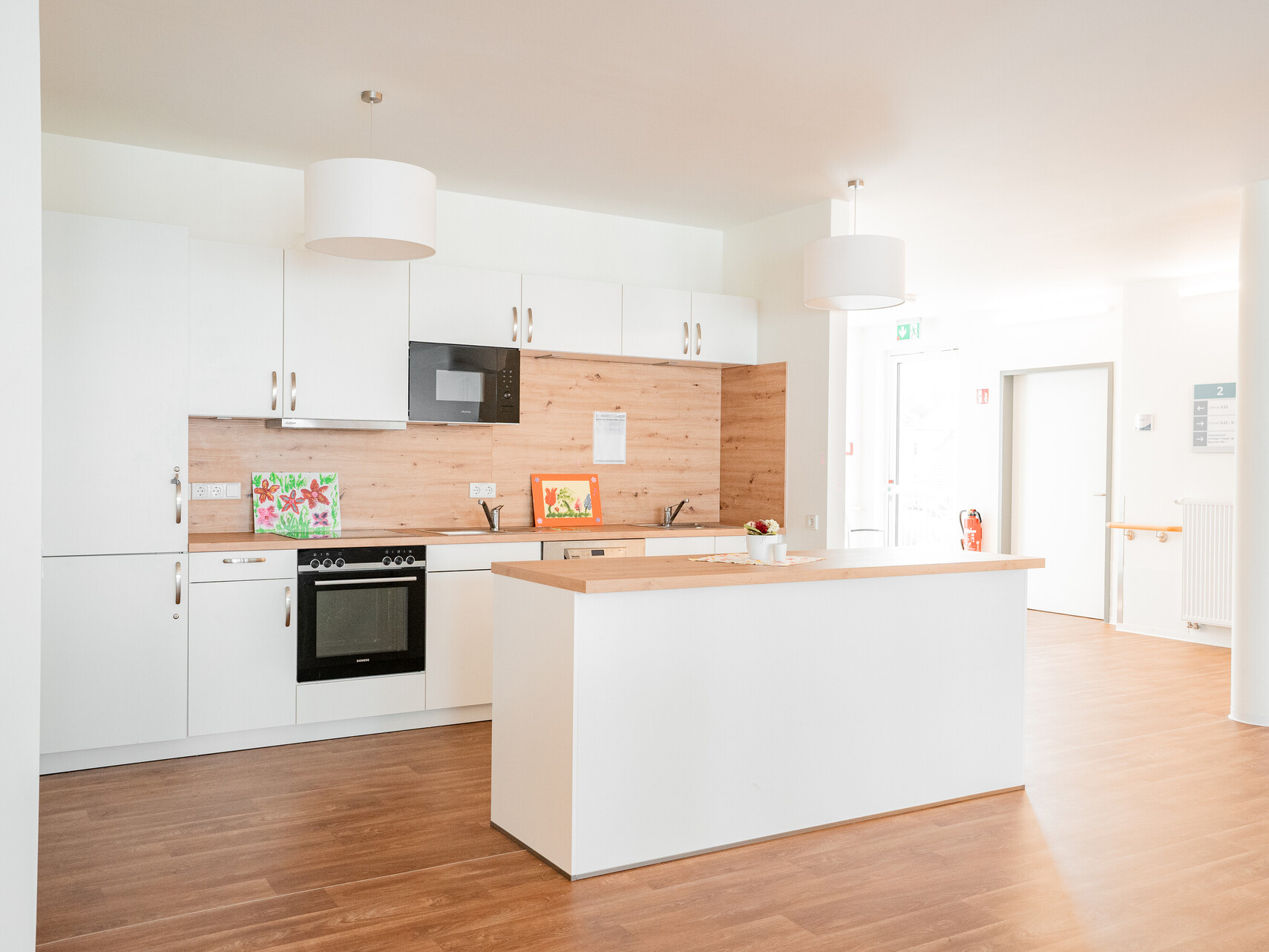 Unsere Wohnanlage hat 91 Plätze, aufgeteilt in 3 Wohnbereiche. Die Zimmer sind hell und modern eingerichtet und natürlich mit Notrufanlage, Telefon, Kabelanschluss, WLAN und rollstuhlgerechter sanitärer Einrichtung ausgestattet. Ein multifunktionaler Begegnungsraum mit Kino, die großzügigen Wohnküchenbereichen und eine große Sonnenterrasse stehen allen Bewohnerinnen und Bewohnern zur Verfügung.